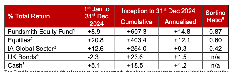 Then, Terry Smith took the stage, ready to deliver the lowdown on Fundsmith's 2024 performance. Let's be honest, it was a year of ups and downs. The Fundsmith Equity Fund saw an 8.9% rise, while the MSCI World Index surged by 20.8%. Terry, ever the pragmatist, pointed out the importance of the long game. Since its inception in 2010, the Fund has delivered an annualized return of 14.8%, beating the Index’s 12.1%. Not too shabby, right?