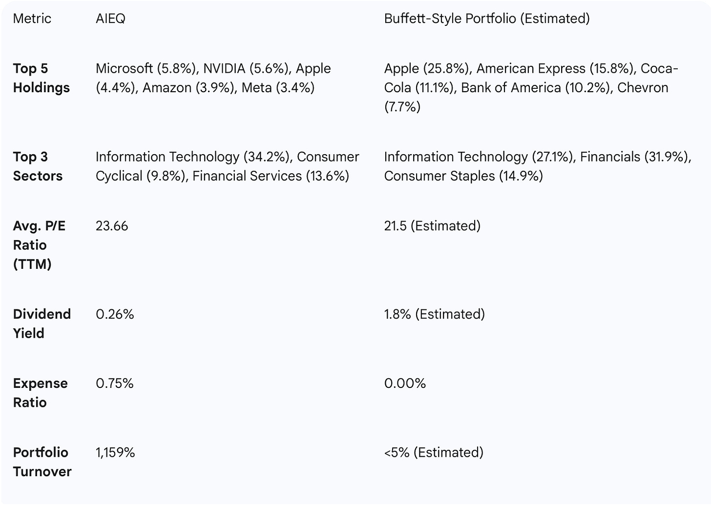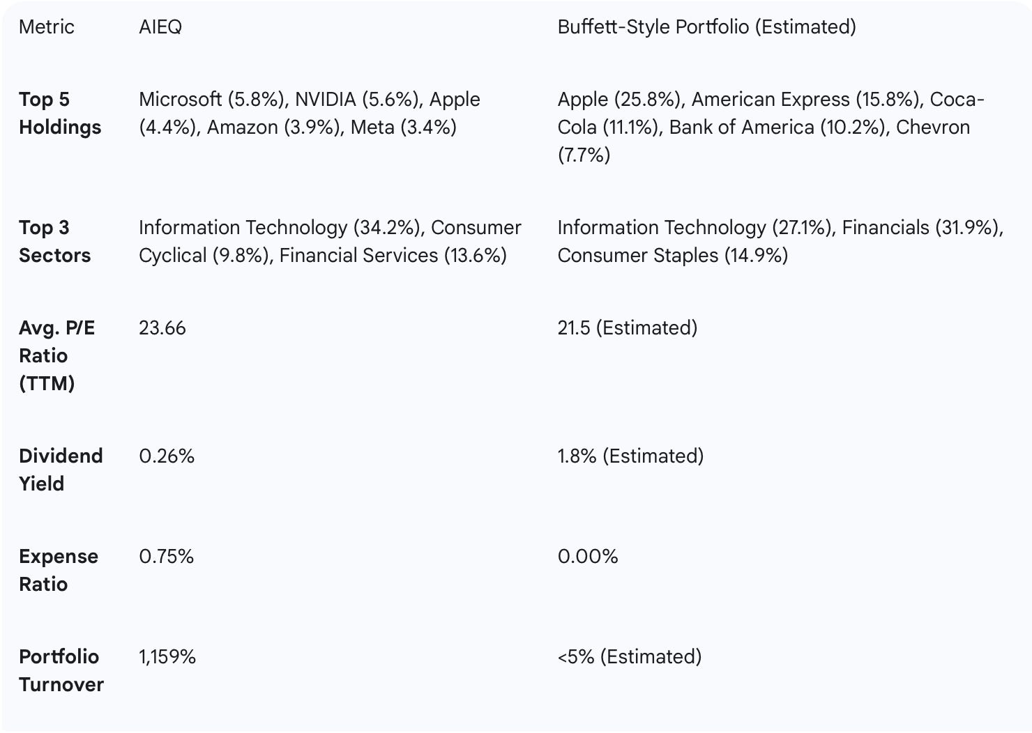 Table 2: Portfolio Snapshot - AIEQ vs. Buffett-Style (as of Q1 2025)